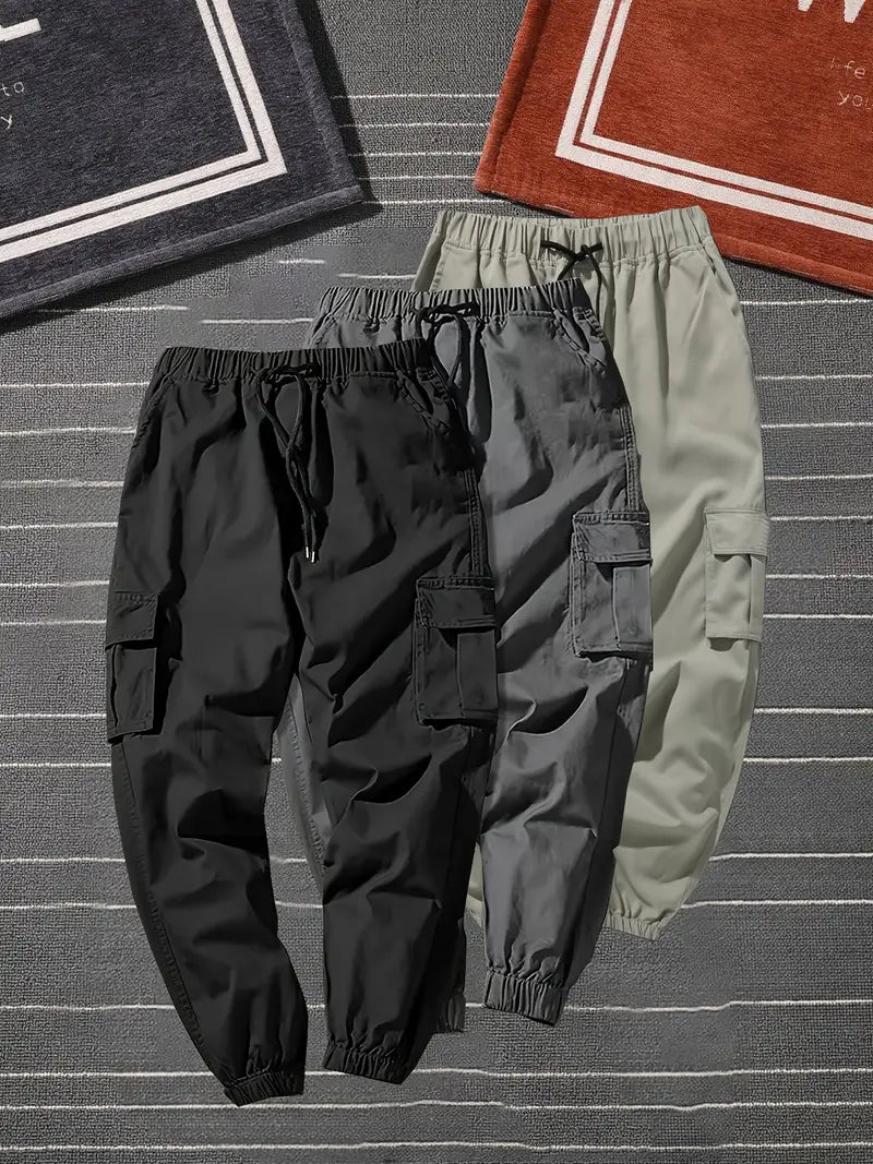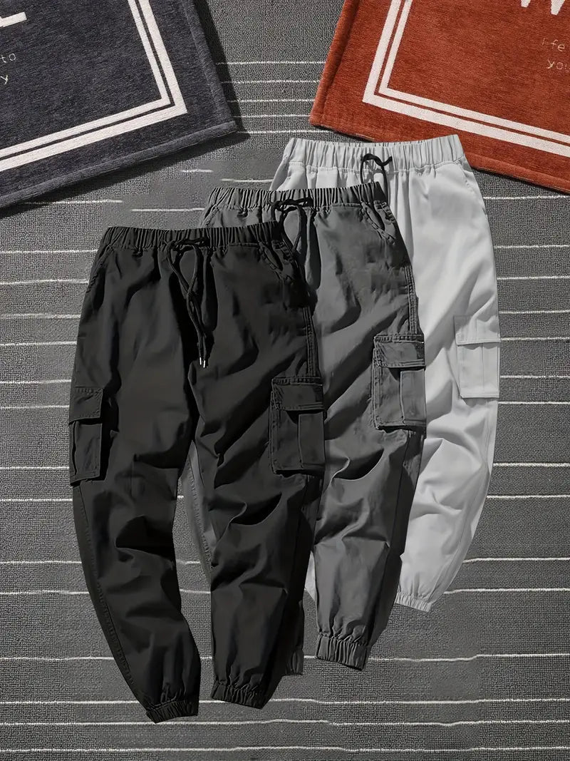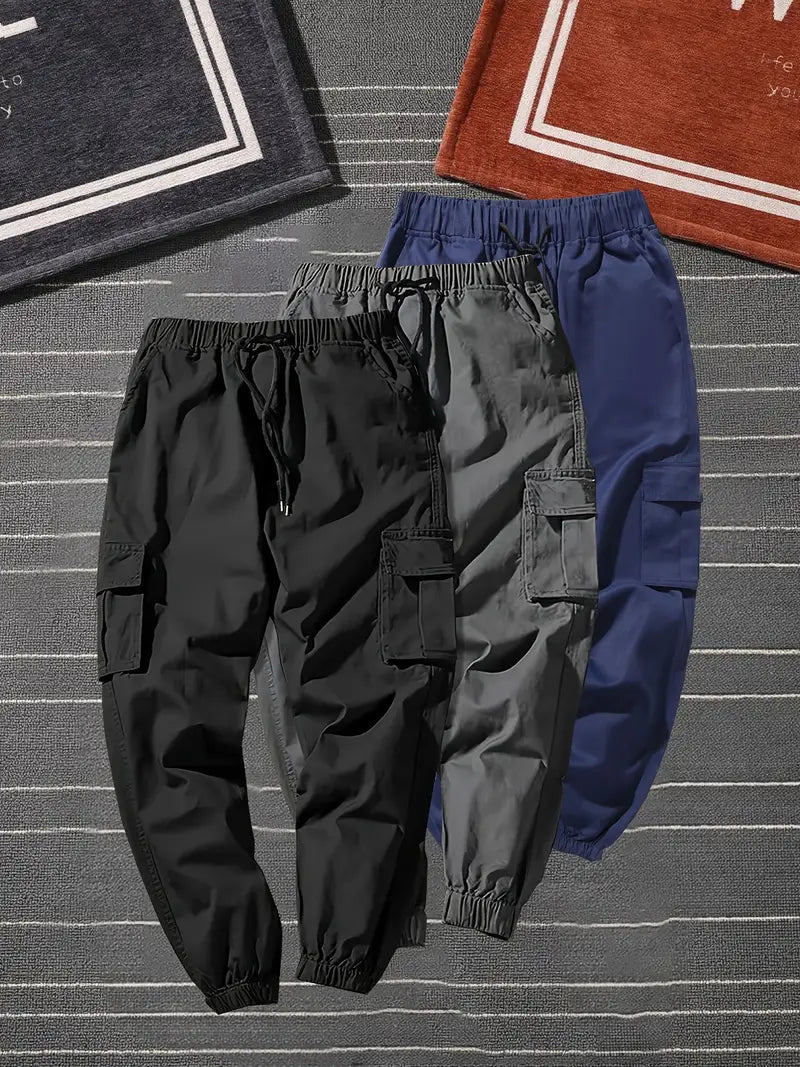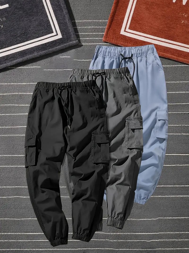 Diese einfarbigen Cargohosen im 3er-Pack bieten schlanke Passform, funktionelle Taschen und einen bequemen Kordelzugbund – perfekt für Alltag, Sport und Outdoor-Aktivitäten. Strapazierfähiger Polyesterstoff für Ganzjahreskomfort.