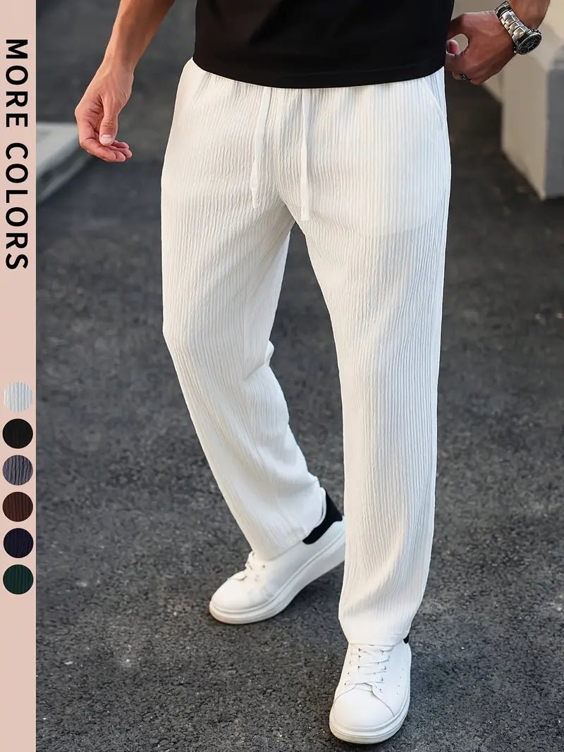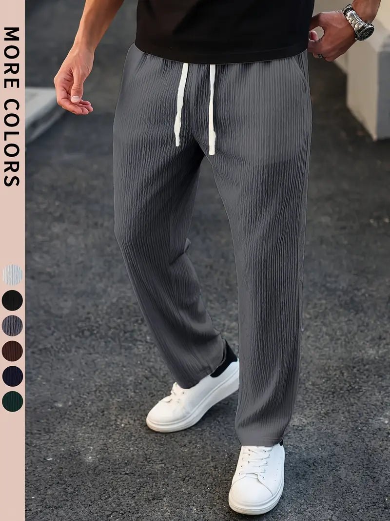Diese knitterfreie Herren-Freizeithose bietet hohe Dehnbarkeit, atmungsaktives Material und eine reguläre Passform – ideal zum Laufen, Trainieren, Arbeiten oder Entspannen. Mit elastischem Bund und Kordelzug passt sie sich perfekt jeder Situation an. Erhältlich in mehreren Trendfarben.