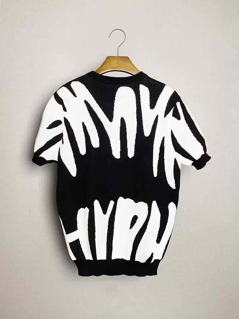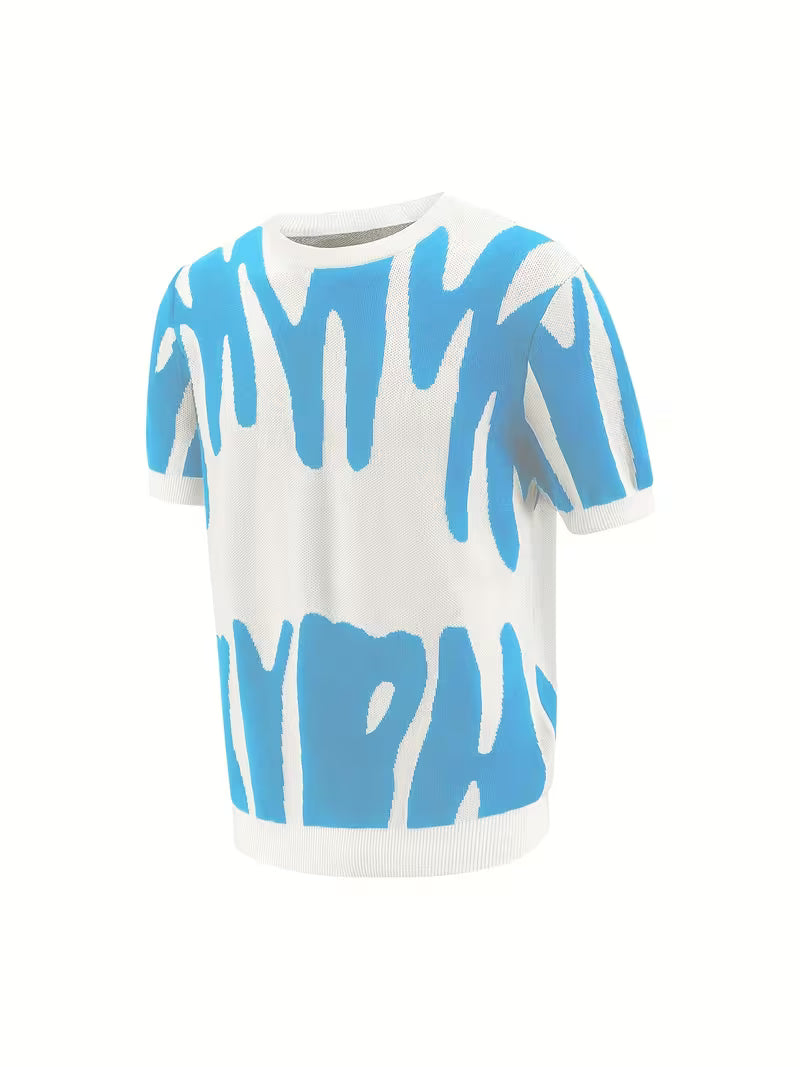 Herren Sommer-T-Shirt 2024 mit modernem Blau-Farbblock und abstraktem Pinselstrich-Design. Aus atmungsaktivem, leicht dehnbarem Polyester-Strickstoff, Regular Fit und Rundhalsausschnitt – perfekt für Alltag, Streetwear und warme Sommertage. Bequem, stylisch und hochwertig verarbeitet.