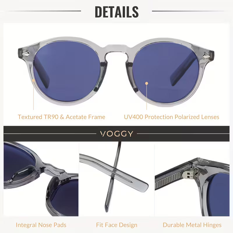 Leichte und stilvolle VOGGY TR90 Sonnenbrille mit polarisierten TAC-Gläsern und UV400-Schutz. Perfekt für Outdoor, Reisen, Sport und den Alltag. Unisex-Design – inklusive Etui & Reinigungstuch