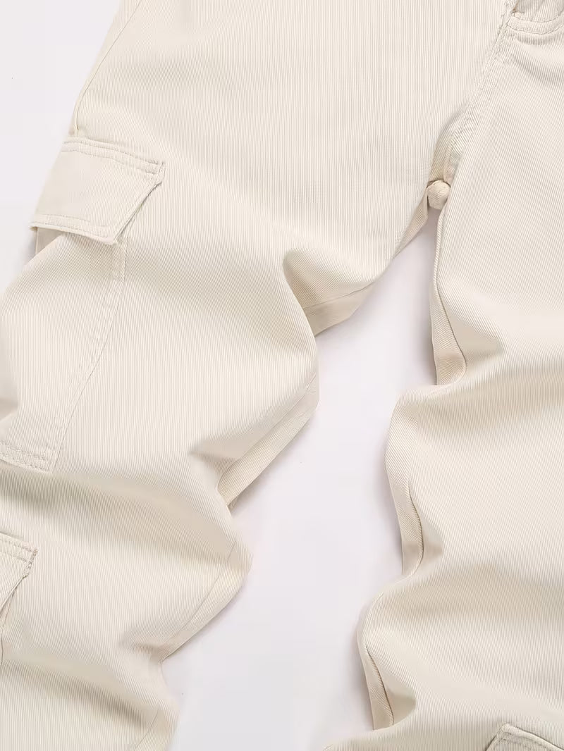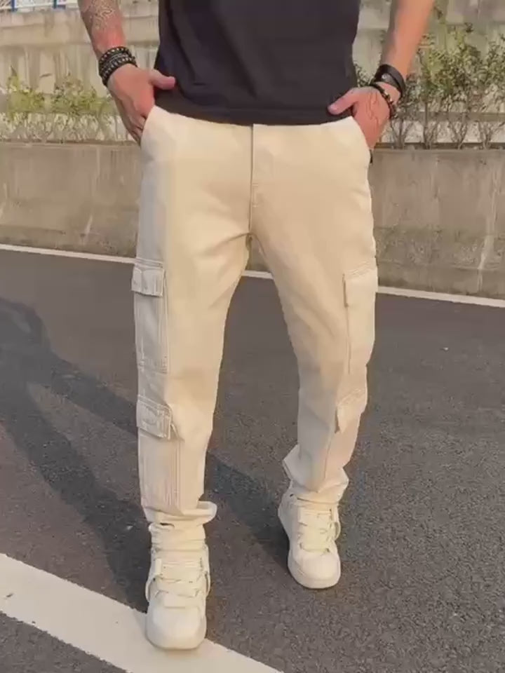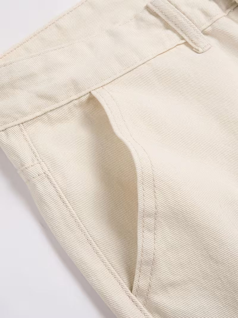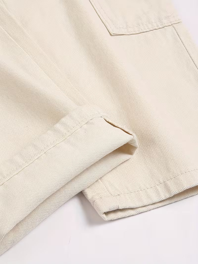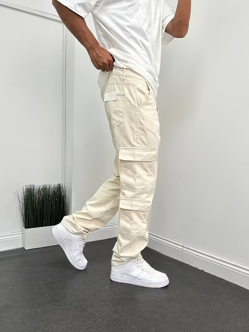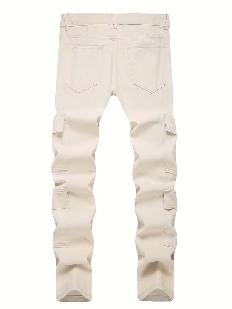 Herren Loose Fit Jeans – Beige & Mehrere Taschen | Allseason Casual Denim